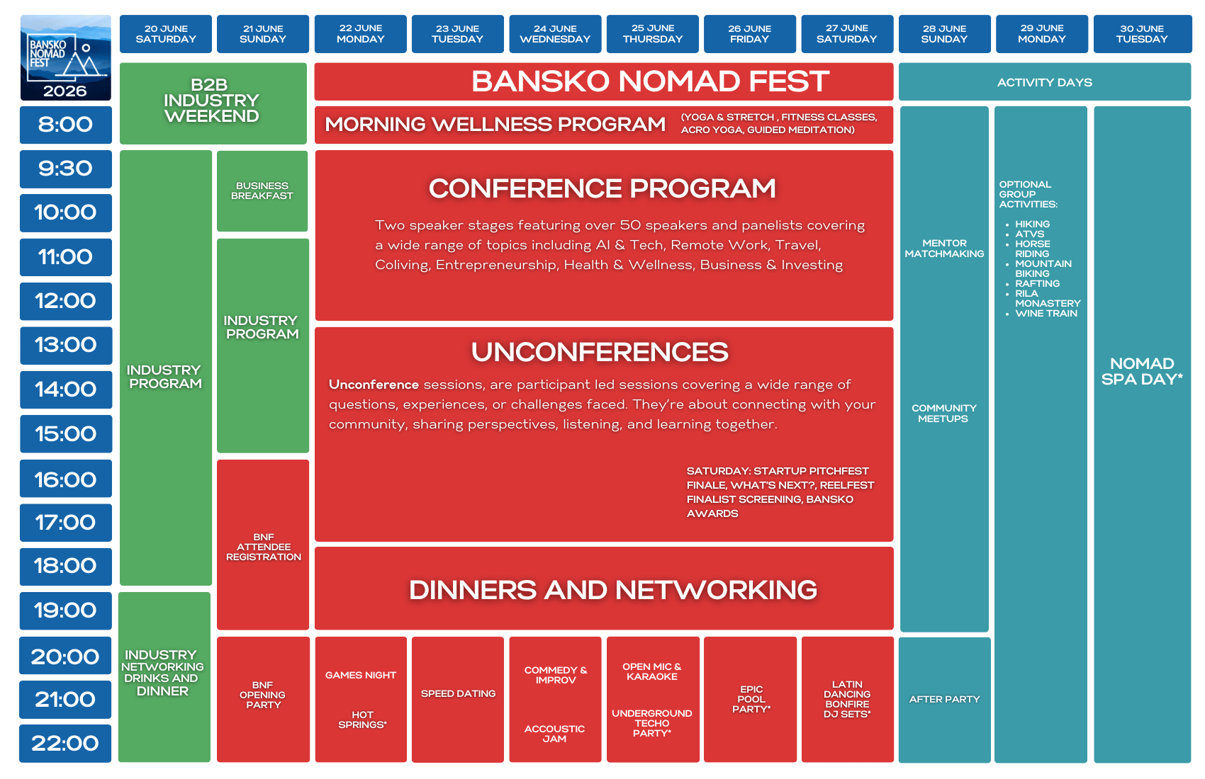 Get ready to join the ultimate gathering of digital nomads at Bansko Nomad Fest 2026! Explore our ticket options and find the perfect fit for your experience—whether you're here for the workshops, networking, outdoor adventures, or all the fun in between. Your journey starts with the right ticket!